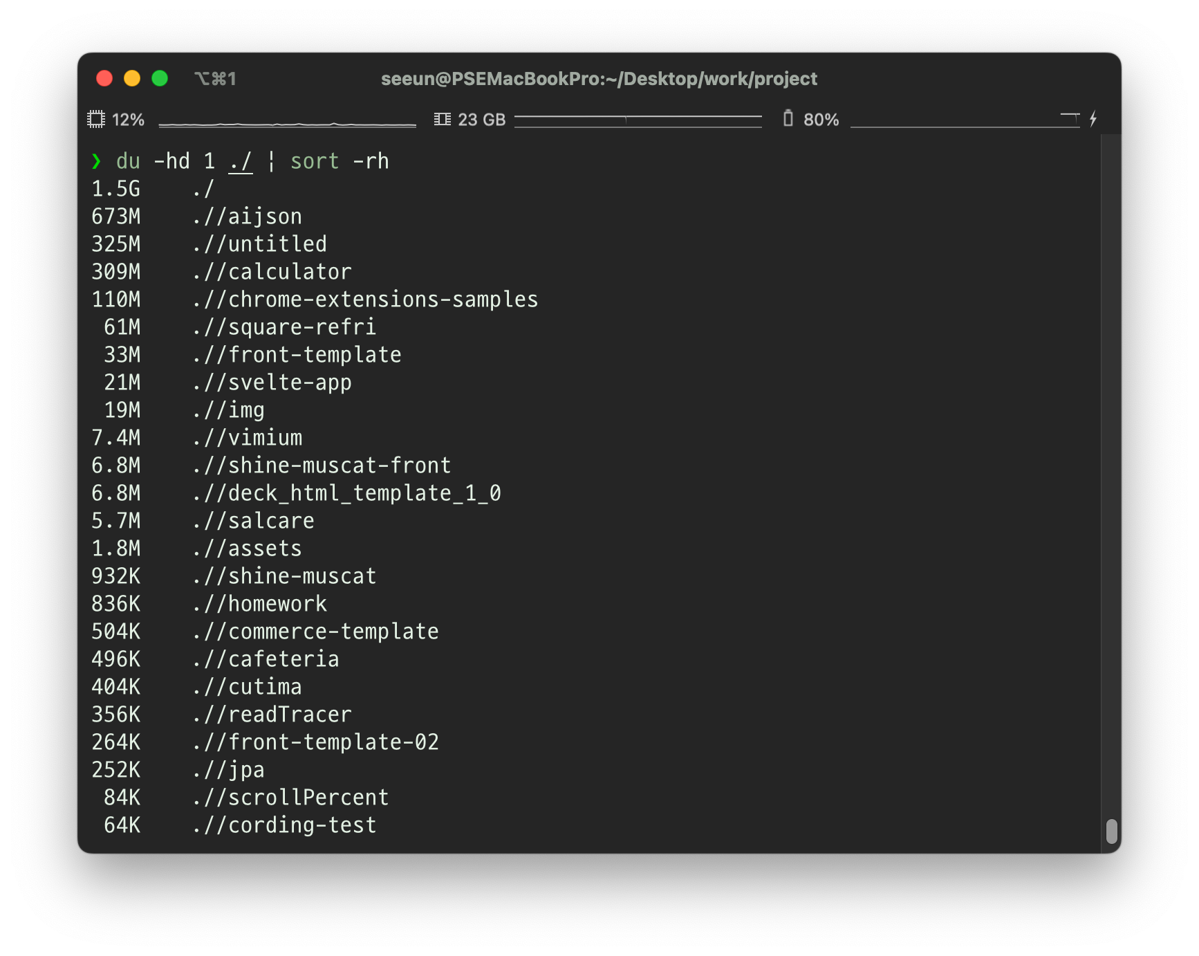 ※macOS에서는 -d 옵션을 사용하여 원하는 깊이만큼 디스크 사용량을 확인할 수 있습니다.