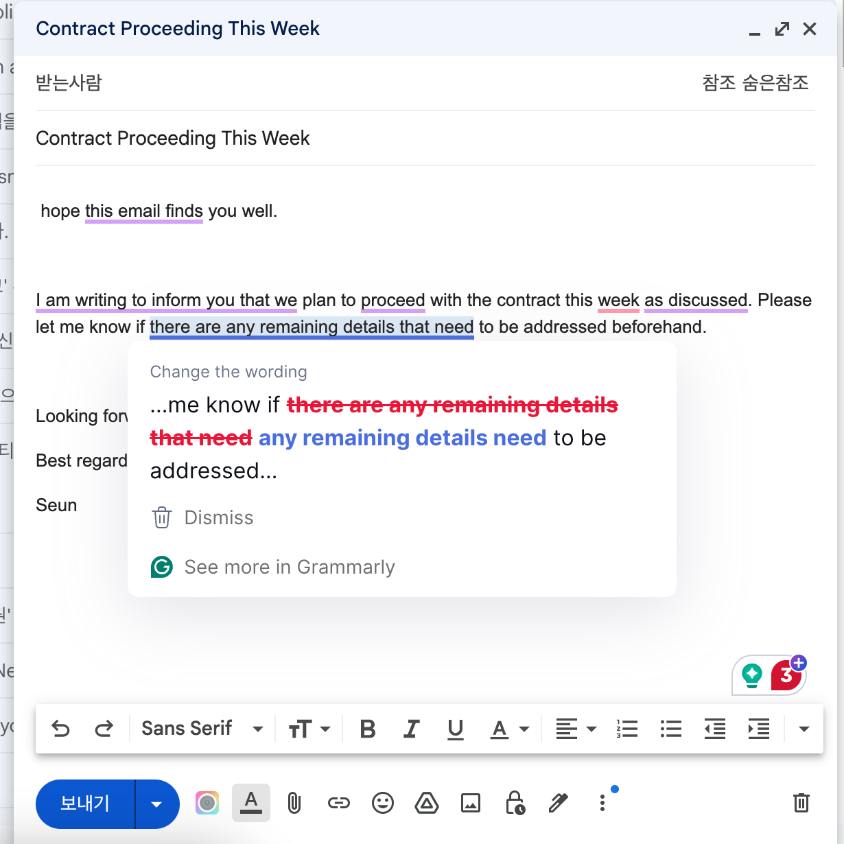 영어로 이메일을 작성하거나 블로그 글을 작성할 때 상당히 유용하게 활용할 수 있는 도구로, 영문 작문 능력을 향상시키는 데도 큰 도움이 됩니다.
