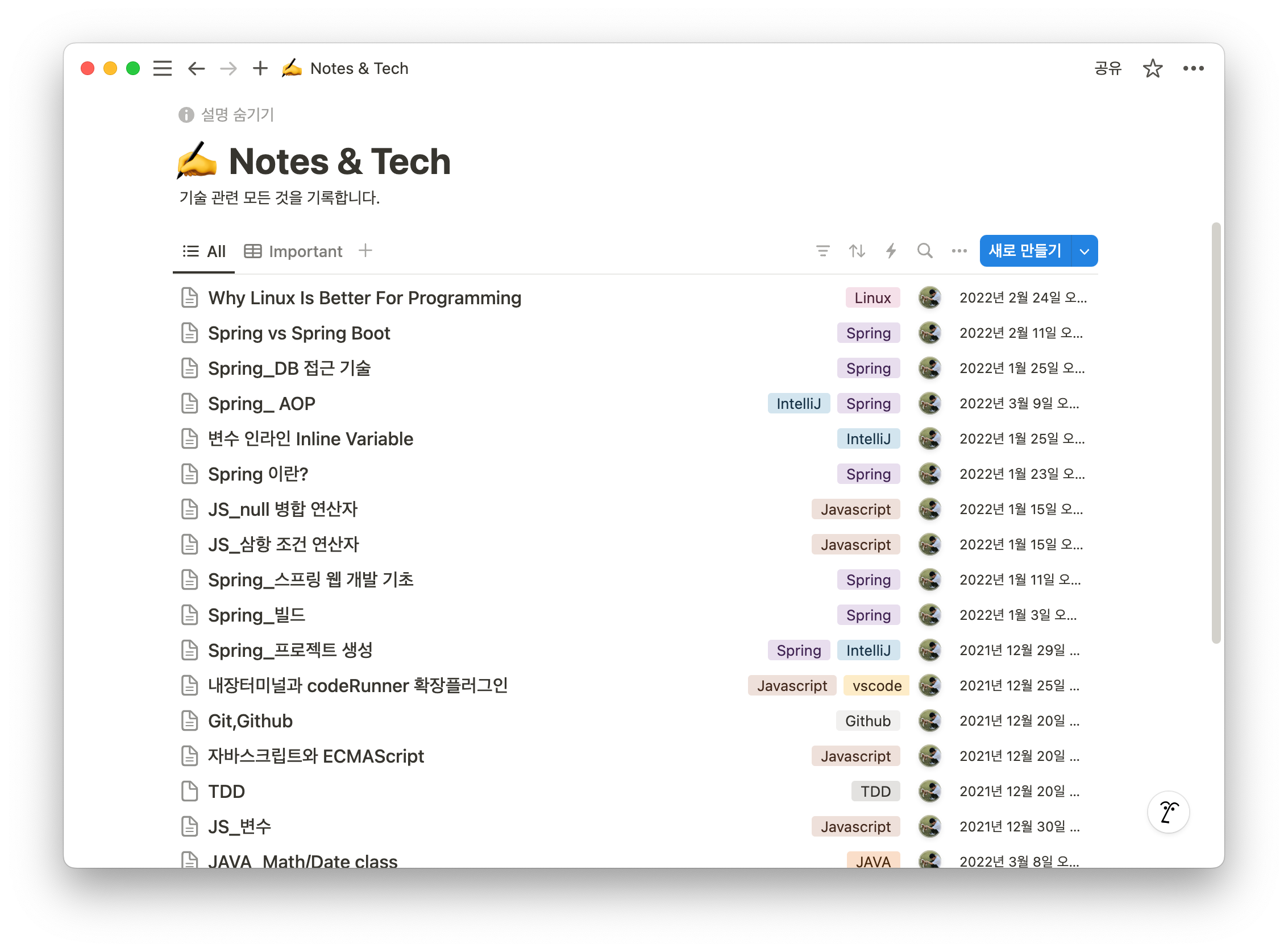 처음에는 노션(Notion)에서 글을 작성하기 시작했다. 노션은 직관적인 UI와 강력한 기능 덕분에 작업 정리와 기록에 있어 훌륭한 도구였다. 특히, 개인적인 메모나 정리에는 정말 탁월했고 이쁜 인터페이스 덕분에 글쓰는 맛이 났다.